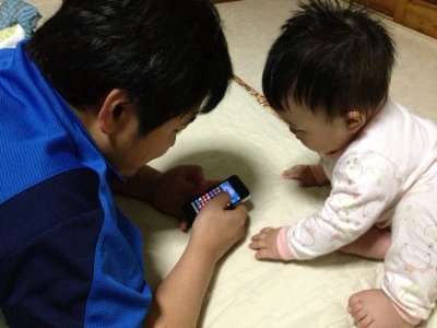 아빠의 애니팡을 유심히 지켜보는 보윤이!