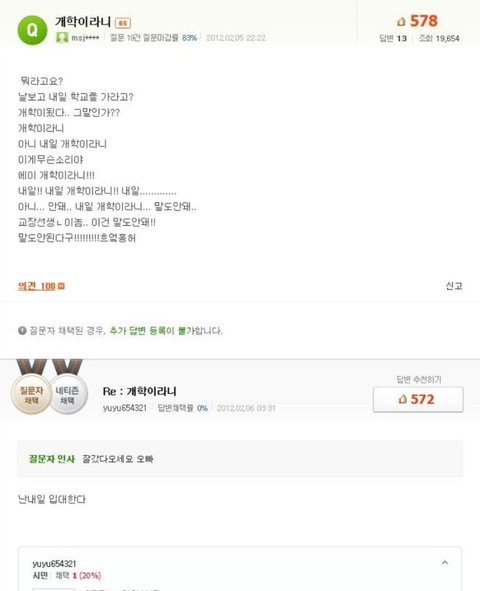 -> 질문 글이나 답변이 너무 웃겨서 유명해진 글.