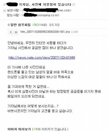 이 사진을 찍은 기자님의 메일 주소를 알아내