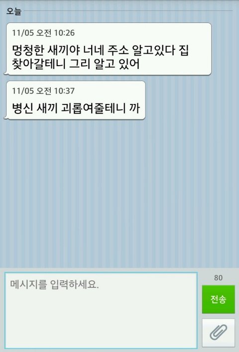 '멍청한 새끼야 너네 주소 알고있다 집 찾아갈테니 그리 알고 있어'