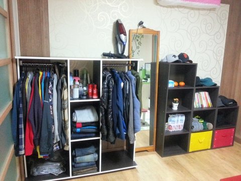 침대+공간박스+TV서랍+협탁+이동식헹거+책상 등등 인터넷으로 조립식 주문으로