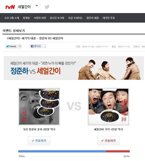 지금 세얼간이 홈페이지에서 투표 받고 있는데