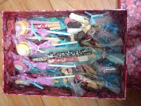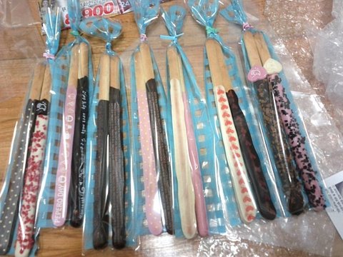 빼뺴로 만들기 준비물이에요 (초콜렛 전사지 긴 막대기 중간 막대기 작은 막대기, 딸기맛 초코맛