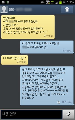 ?? - 네 여기 OO교회인데요 누가 OOO씨 건강을 위해 기도해달라고 하면서