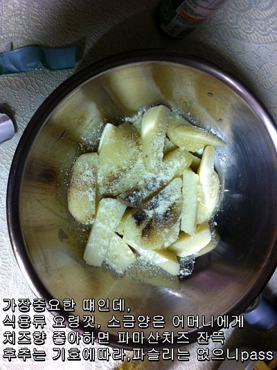 준비물 : 오븐,감자,파마산치즈가루,파슬리(전 못넣었습니다ㅠ),올리브유,소금