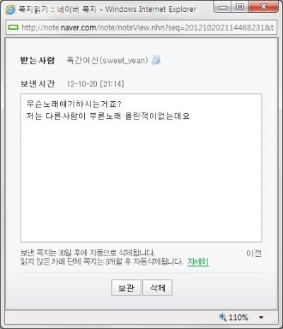 아직 저 폭간여신인가뭔가하는 인간은 쪽지확인도 안하고있구요.
