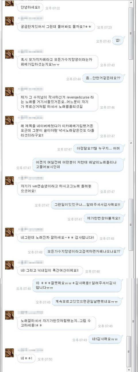 그리고 채팅내용에서 제 노랠 도용했다는 사람을 확인해보세요.
