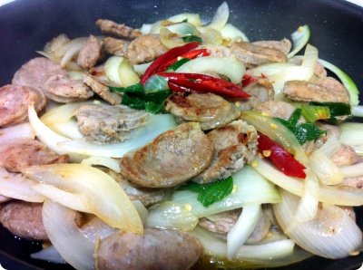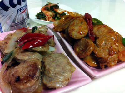 육식을 즐기는 초딩입맛 우리 막내..지금은 군복무중이에요..ㅎ 오랜만에 만난 동생을 위해서 직접 만든 수제소시지를 야채와 함께 샤샤샥~ 절반은 그냥 볶아서 접시에 담고 절반은 칠리소스에 버무려서 매콤하게~ 오늘 같은날 밤에 후딱 볶아서 맥주 한잔 하면~캬~ 좋겠죠잉?ㅋ