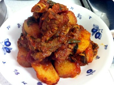 등갈비 만원어치 사서 2/3는 매운갈비찜으로, 1/3은 오븐구이로 했어요. 감자가 두개 있길래 하나는 등갈비 찜에 넣고, 하나는 오븐에 웨지감자로..ㅎ 등갈비찜에는 무도 몇조각 넣어서~ 아주 매콤하고 개운하게~ ^^ 어떻게 쐬주 한잔?ㅋㅋ