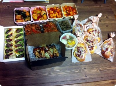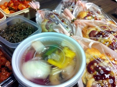 직업상 교대근물르 하는 우리애인~ 사무실 일이 고단한지 자꾸 살이 빠지고~ 밥하기 귀찮다고 야간 근무마치고 아침도 굶고 다니길래..준비해서 쨔쟌~ 하고 사무실에 배달해준 선물들이랍니당.ㅎㅎ 밤에 먹을 간신들과 함께~^^