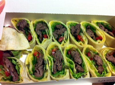소불고기를 팬에 바싹 구워주고~ 피클허니머스터드소스를 바른 또띠아 위에 상추 두장 깔고~불고기 깔고~ 양파랑 파프리카 올리고 돌돌돌 말아서 랩으로 싸놨다가 옆으로 자르면 끝~^^ 맛도 좋고 그럴싸 하죠~