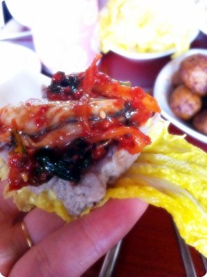 생굴 한 봉지사서 배추김치 양념에 버무리시고~ 두툼한 목살 맛나게 삶아서 절임 배추에 싸서 드세용~ 맛이~ 좋아도 너~~~~~~~무 조아~^^