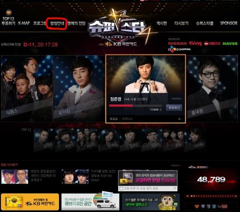 KB 국민카드 홈페이지에 들어가시면 오른쪽에 슈퍼스타k4 방청권 이벤트가 있습니다.