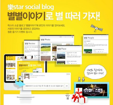 락스타 소셜 블로그 내에 있는 '별별이야기' 게시판 별별 포토, 별별 리뷰, 별별 플레이스, 별별 피플.