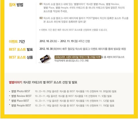 추첨을 통해 총 4명의 베스트 포스트 작성자에게 슈퍼스타k4 결승전 방청권을 주는 이벤트 :)