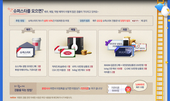 티빙(tving)은 슈퍼스타K의 공식 스폰서 답게, 생방송 방청권 뿐만 아니라 !! 푸짐한 서물도 함께 !!!
