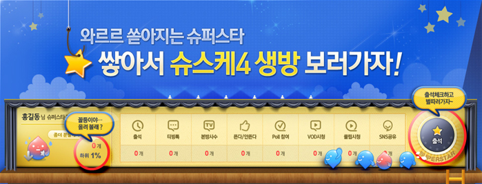 슈퍼스타 적립현황이 10% 이내가 되면 매주 추첨을 통해 슈퍼스타k4 생방송 방청권을 받을 수 있습니다