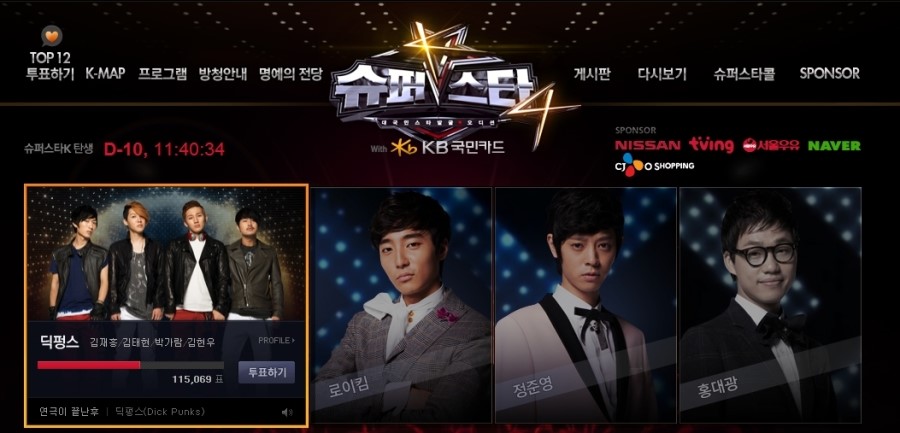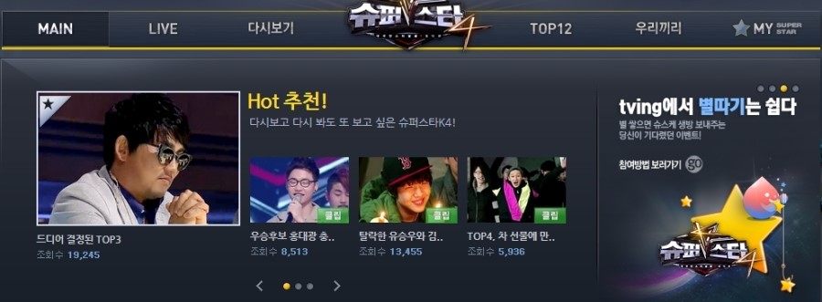 ①티빙 홈페이지 슈퍼스타K4 전용관으로 이동한다.
