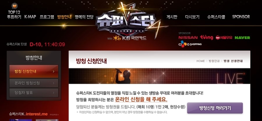 ① KB국민카드 홈페이지에 들어가서 오른쪽 슈퍼스타K4 방청권 이벤트를 클릭클릭!