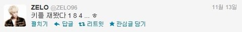 키를 재봤는데... 184cm가 되었다며 흐뭇한 멘션을 올린 B.A.P 젤로