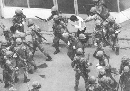 공수부대는 이들을 곤봉과 대검으로 무자비한 살상을 합니다.