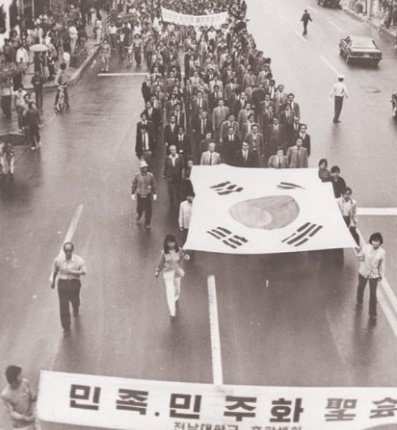 '1980년 5월 18일, 전라남도 광주시민들이 계엄령 철폐와
