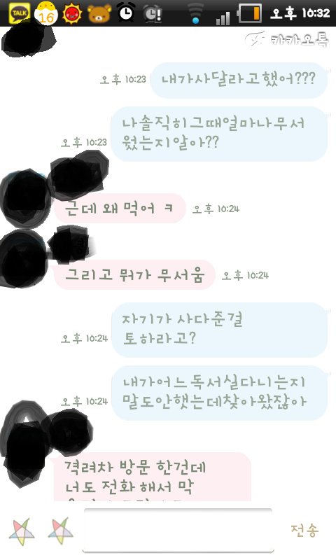 지금 이 카톡들을 받고 너무 무섭고 어찌할 줄 모르겠어서 난생 처음 판을 써봐요.
