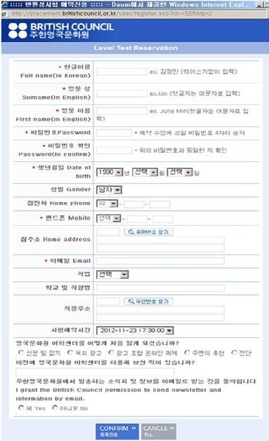 저도 스스로 온라인으로 영국문화원 레벨 테스트를 예약해 진행해 보니 5분도 안 걸리네요.