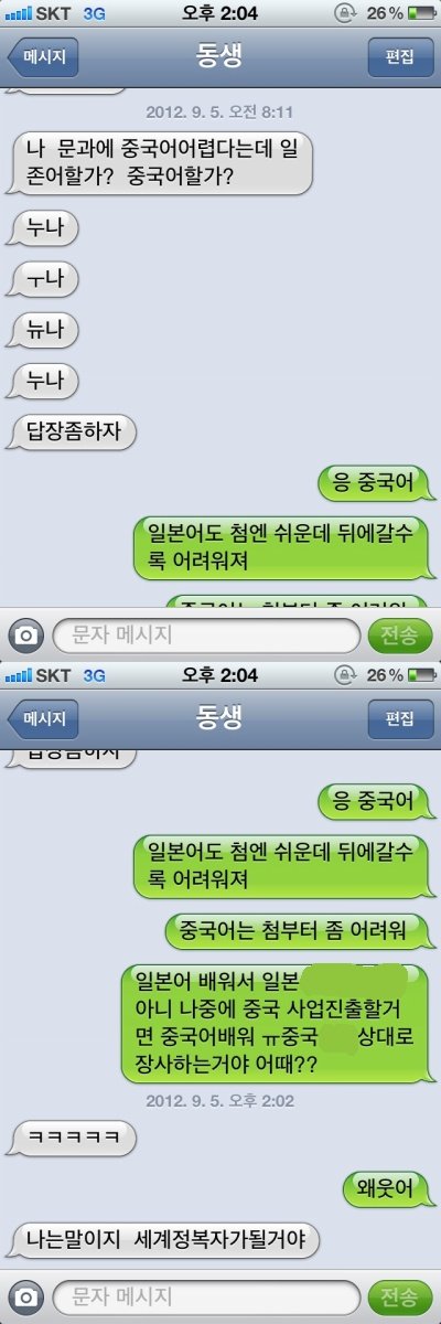 아! 본론 ㅋㅋ 오늘 톡에 남동생과의 문자글을 쓰신 누나분의 글을 보고 생각났음..