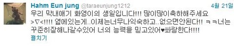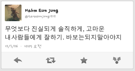 그것도 다음날. 아마 이건 왕따가 아니라 약간 불화만 있었던 듯 그리고 저게 대놓고 디스로 보이세요? 살짝 훈계정도지. 그리고 은정은 다리 부러졌을 때 무대는 못 나갔어도 각종 봉사활동과 예능에 다 나갔었어요 슈퍼주니어 동해도 내내 무대 앉아서 불렀었고 저도 발목 부러졌을 때 학교 학원 다 다녔었고 체육관 음악실 지하실 다 이동했었어요 아프긴 했지만 그래도 최대한 열심히 했었음
