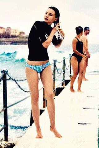 미란다커도 퀵실버 웻수트 상의를 입은 모습입니다. 패션지 보그에 실려 화제가 됐었죠.