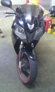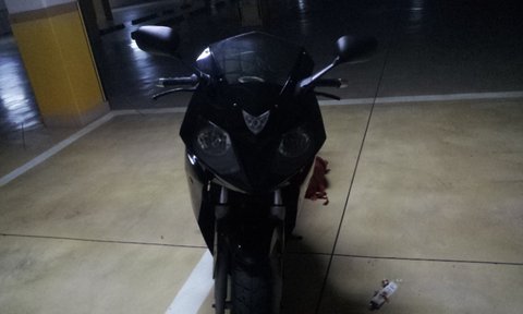 그리고 가장 큰 특징은 앞 윙카가 양쪽 다 없다는 것입니다. 그리고 왼쪽 클러지핸들 끝부분이 잘려나가있습니다. 왼쪽 엔진룸쪽 카울은 깨진듯이 금가있구요. 체인 수명이 다되어 장력 조절하는 것이 끝까지 땡겨진것도 단서가 될지 모르겠네요.