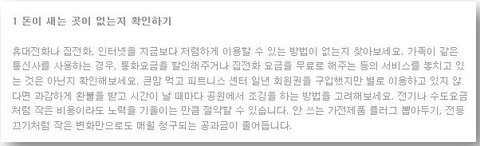 이러한 다양한 혜택을 제공 받고 나니 월 8만원 이상 기계비용이 절감되더군요.LTE 데이터/전화 통화도 부담 없이 사용할 수 있어 사용량은 많아졌지만 비용은 오히려 절감하는효과를 누릴 수 있게 되었습니다.연 단위로 계산해보니 월 평균 8만원씩 절약해도 일년이면 100만원 가량 절약되더군요^^회원님들 가정도 꼼꼼히 살펴보신 후 가계비용을 절감하시길 바랍니다