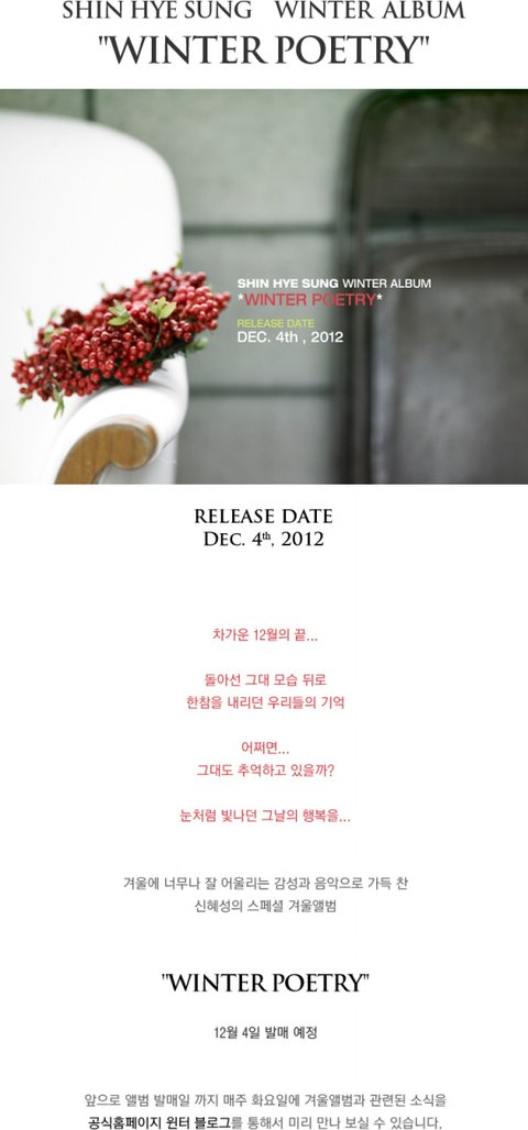 한겨울에 따뜻한 방에서 소설책 하나 붙잡고 감성이 풍부해지는 신혜성 노래를 들으면 딱일거같음.