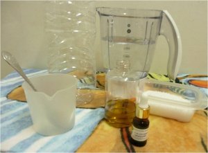 정제수 800ml, 구연산 150g, 올리브리퀴드 30ml, 다우니향료 10ml