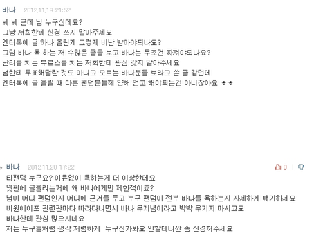바나..아니 무개념바나들아.. 진짜 철없는거알아요?