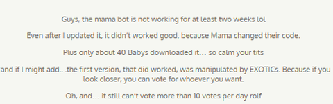 얘들아, 마마 봇은 적어도 2주 동안은 사용되고 있지 않았어.