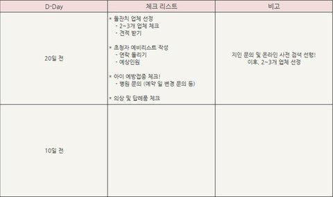 D- 90 단위로 잡은 “돌잔치, 체크리스트” (제 사례)