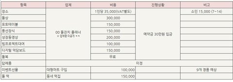 3. 잔치 예산 수립 : 각 항목 별로 예산을 꼼꼼히 챙기셔야 해요 ^^ !
