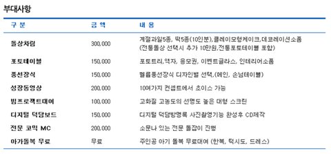 여기가 좋았던게 돌상에서부터 여러 부대사항들까지 함께 챙겨줘서 굿굿!
