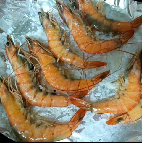 신랑이 강릉으로 결혼식 갔다가 사온 새우로 소금구이 해먹었어요^^