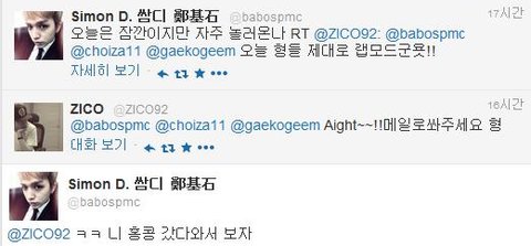 싸이먼디랑 지코와의 트위터대화에서..