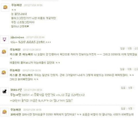 조카 그럼 우리가 B.A.P 머리에 피도 안마른 그룹이 나대네 이러고 욕하면 니네같음 기분 좋겠음?