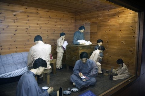 산지천 중국피난선의 내부에는 당시 피난민들의 상황을 세밀하게 묘사한 1:1 비율의 인형들이 전시되어 있었는데 1950년부터 산지천에서 피난생활을 하던 이들은 1953년 인천에 남아 있던 친족들까지 합류하면서 이 정크선에서 생활했다고 한다.