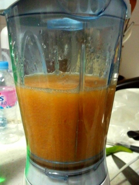저는 단감과 얼음, 사이다를 넣고 갈았습니다^^