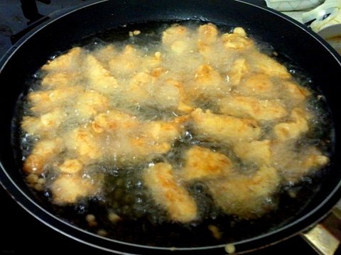 기름180도로 닭은 안심살?닭가슴살 상관없음! 녹말에 계란풀고 옷만드시면되요^^
