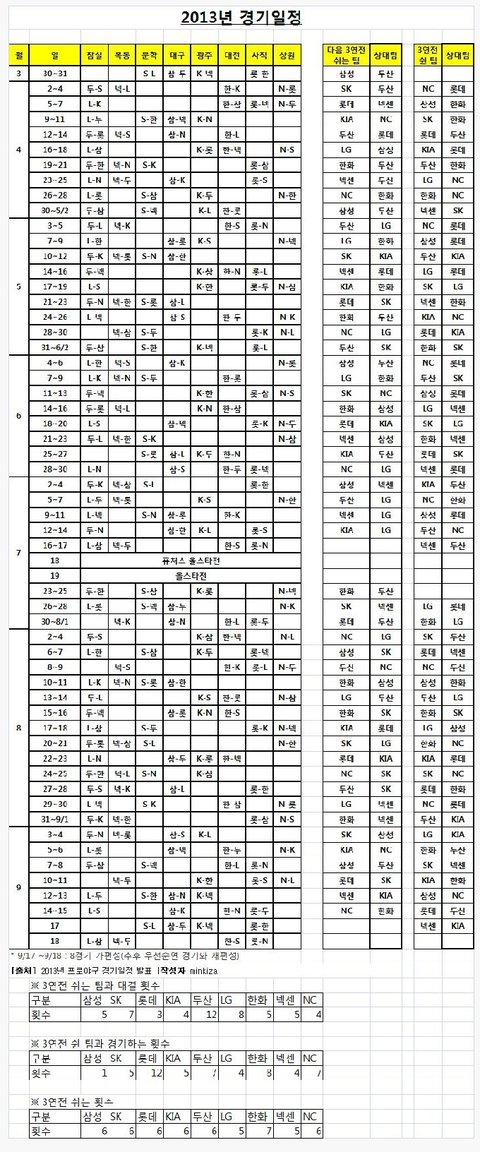 형평성을 상실한 2013년 프로야구 롯데자이언츠 일정