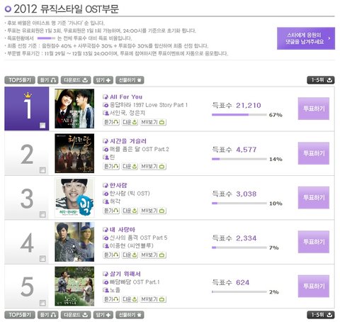 쿨의 ALL FOR YOU가 1위네용 ~ㅋㅋㅋㅋ