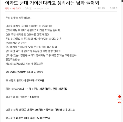 그런데 남자가 군가산점을 꺼내면 너희들은 38년간 660만원을 소비하는것 + 생리의 고통을 언제나 기계처럼 들먹이잖아