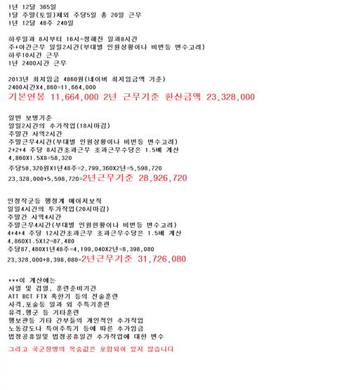 자 그럼 다음은 우리 군인들이 만약 최저임금으로 월급을 받는다면 어떨까?